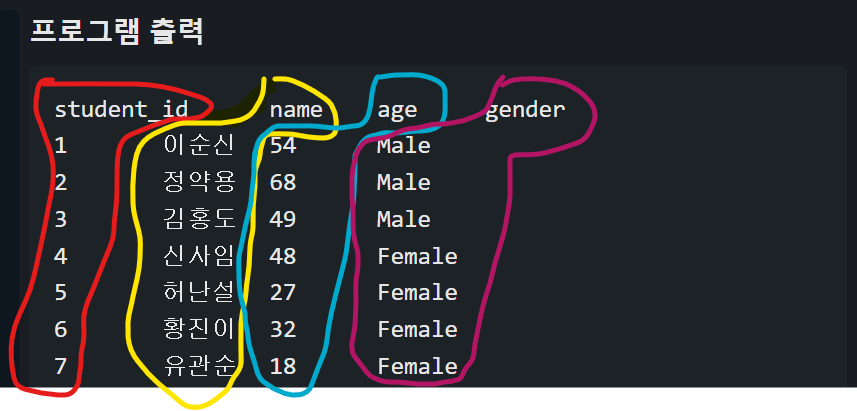 그럼 이번에는 이름과 나이만을 조회하는 쿼리를 작성해보자.